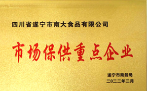 四川省遂寧市南大食品有限公司——法人獨(dú)資、國(guó)家級(jí)重點(diǎn)龍頭企業(yè)。在歷經(jīng)走村串戶、挑擔(dān)經(jīng)營(yíng)、作坊生產(chǎn)后,2004年3月公司正式注冊(cè)成立,通過(guò)20余年的努力,公司完成了生豬養(yǎng)殖——屠宰加工——生物科技產(chǎn)品智造——冷鮮水產(chǎn)市場(chǎng)專屬經(jīng)營(yíng)的多元化產(chǎn)業(yè)布局。公司現(xiàn)有員工360人,總部占地101.7畝,注冊(cè)資本5000萬(wàn)元,總資產(chǎn)近10億元,擁有冷庫(kù)2.5萬(wàn)噸,年屠宰加工生豬能力50萬(wàn)頭,年產(chǎn)值10億余元,系“農(nóng)業(yè)產(chǎn)業(yè)化國(guó)家重點(diǎn)龍頭企業(yè)”。